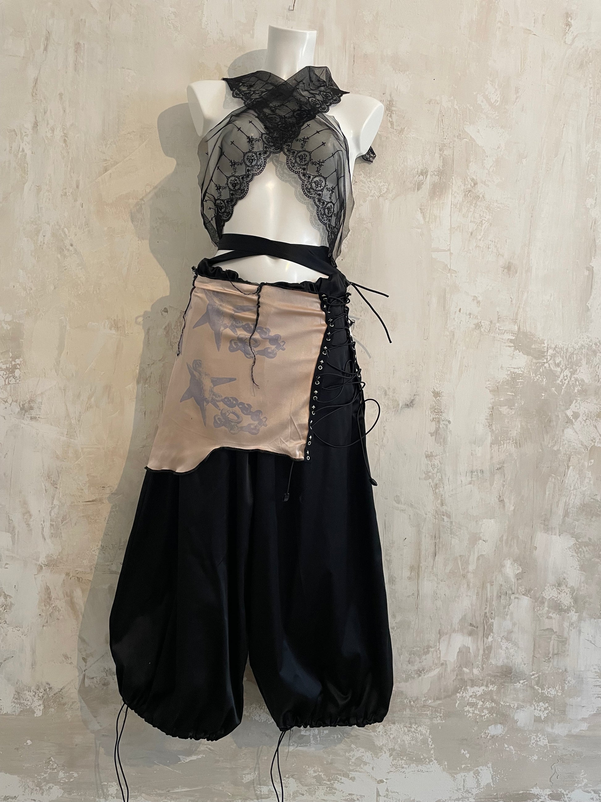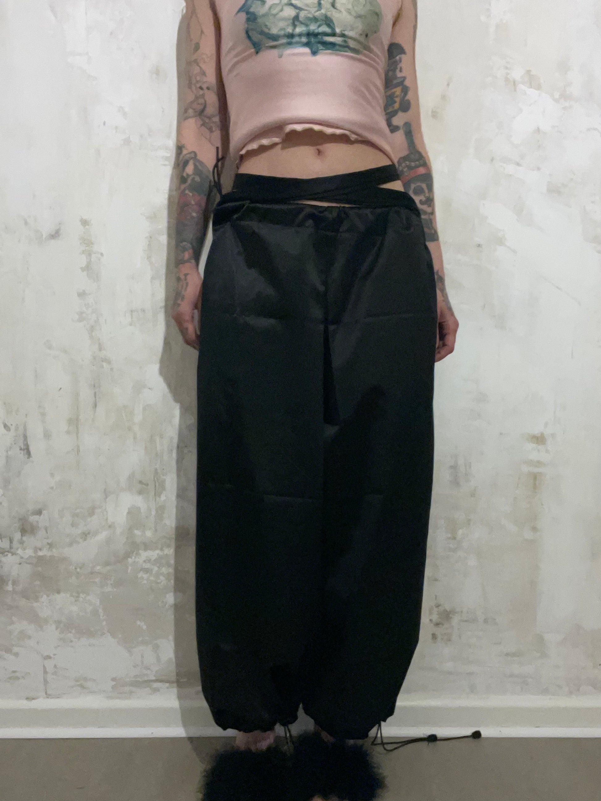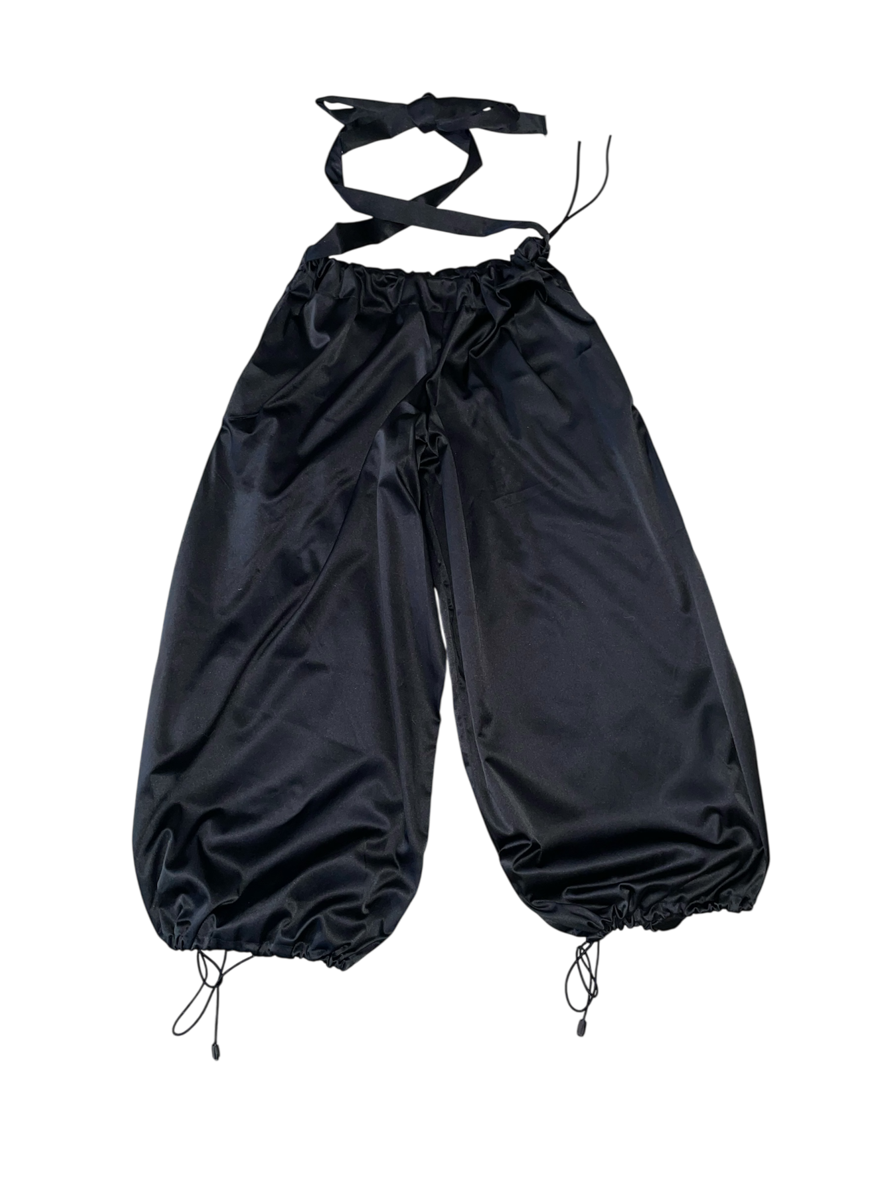 one of one black satin pants with drawstrings