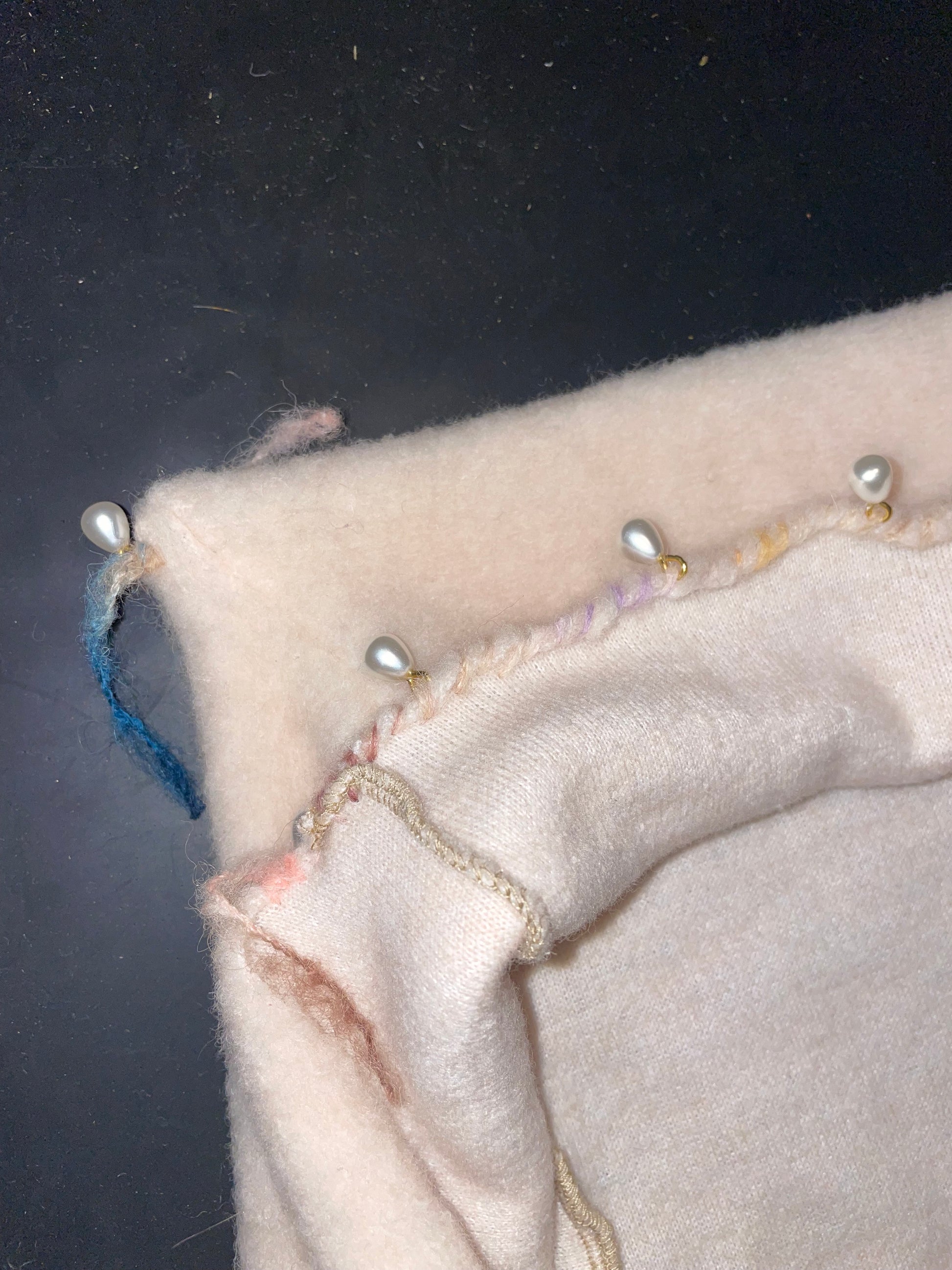 hand-sewn hems with alpaka yarn, little pearls attached