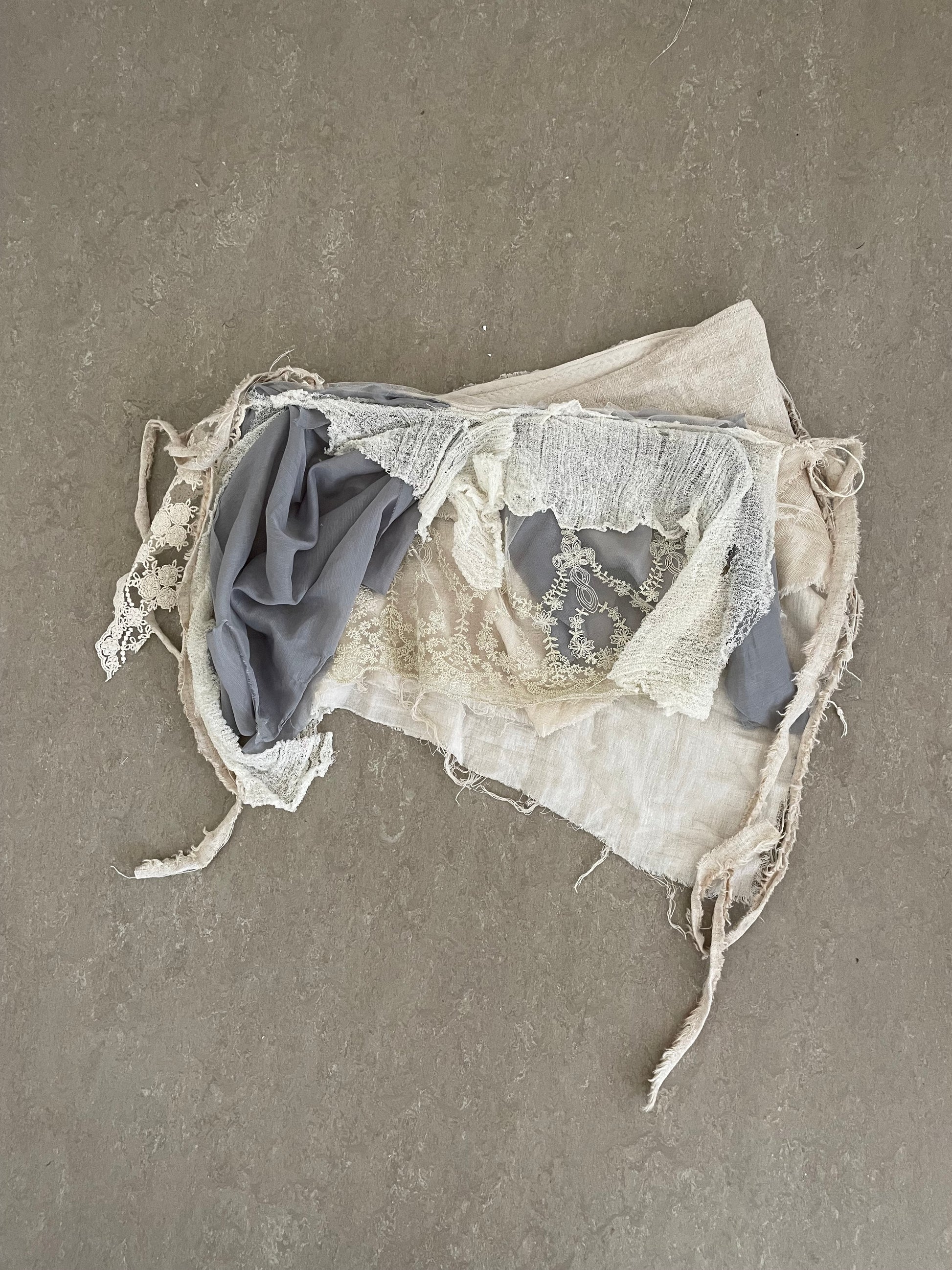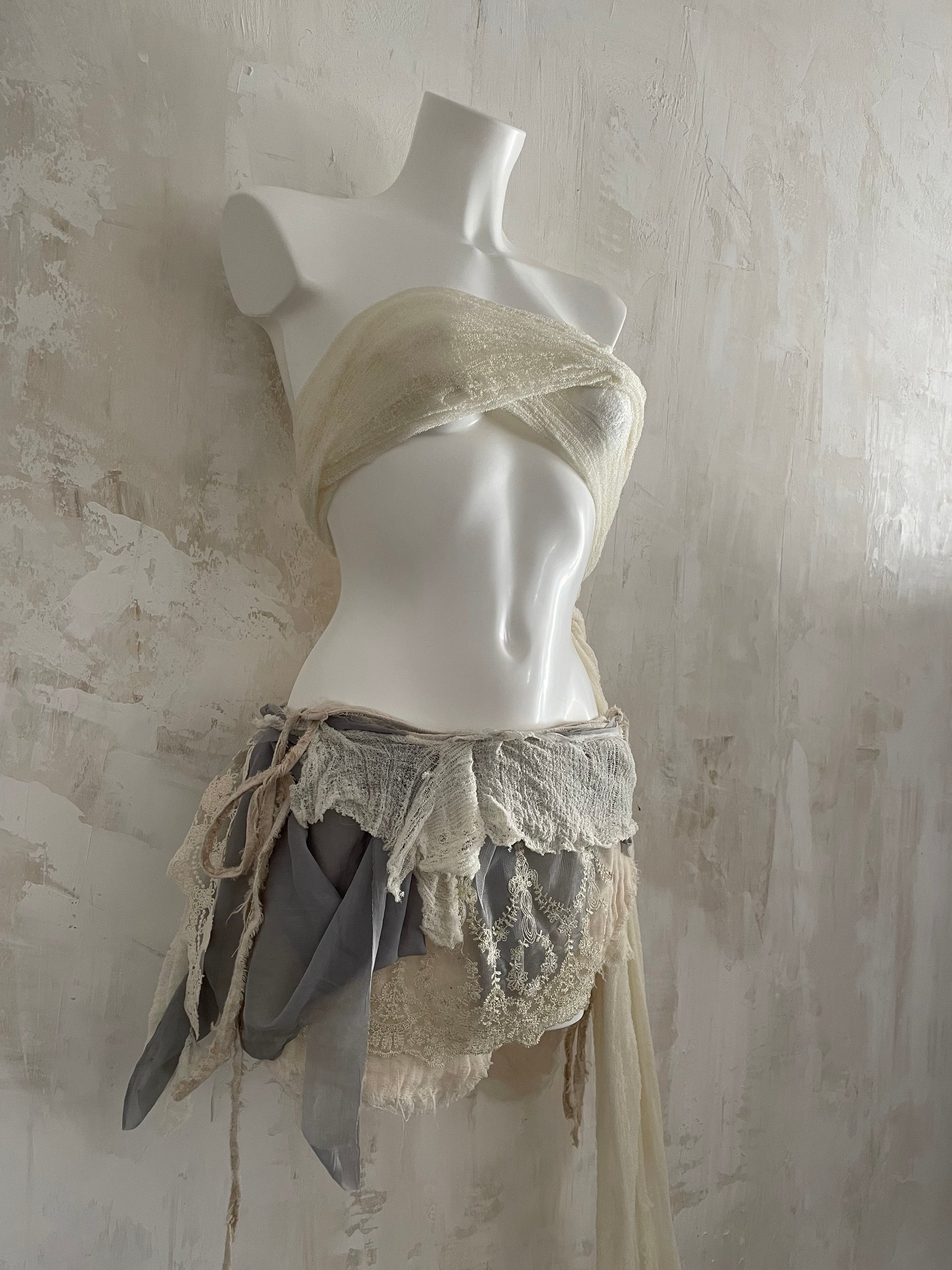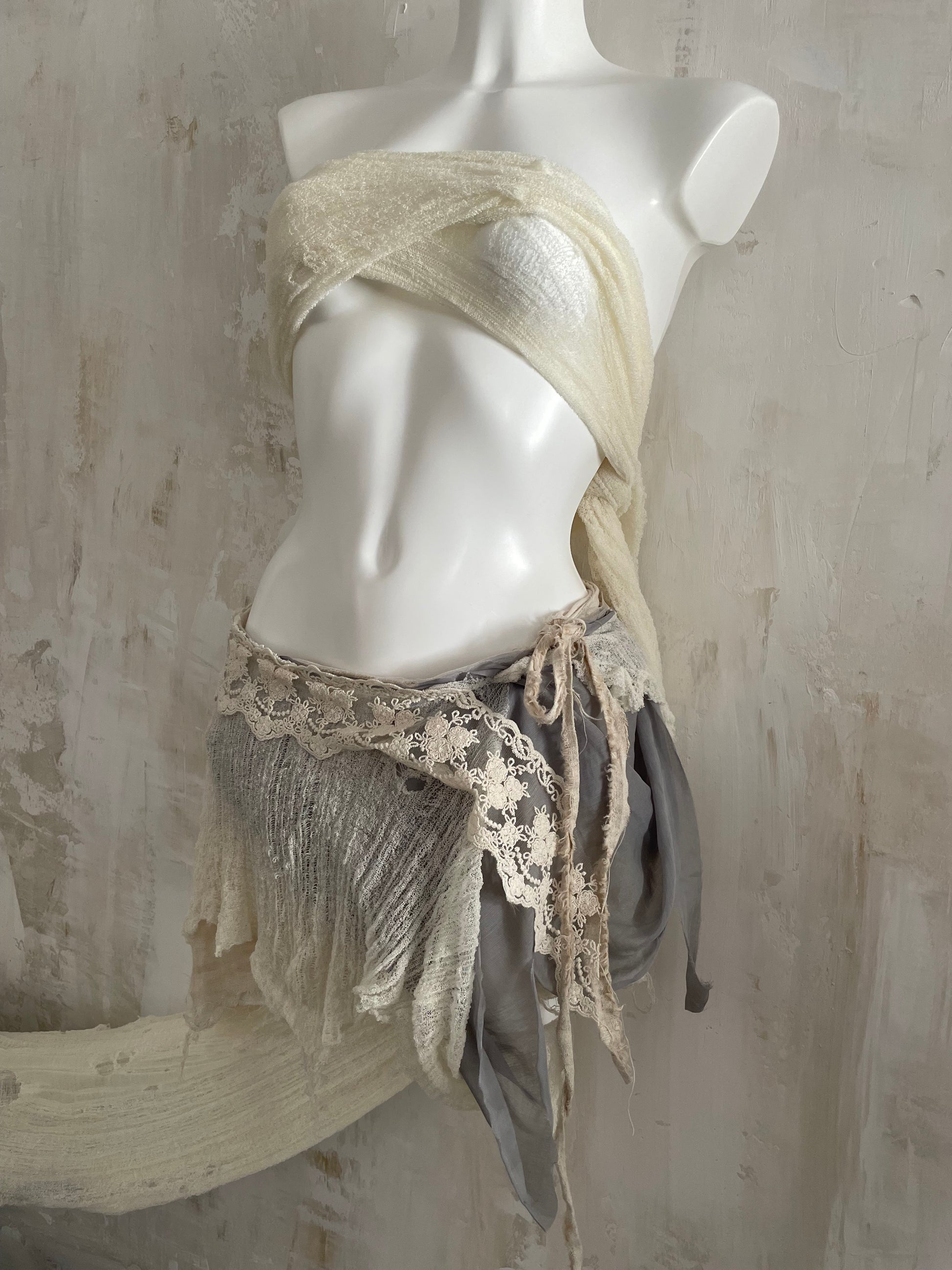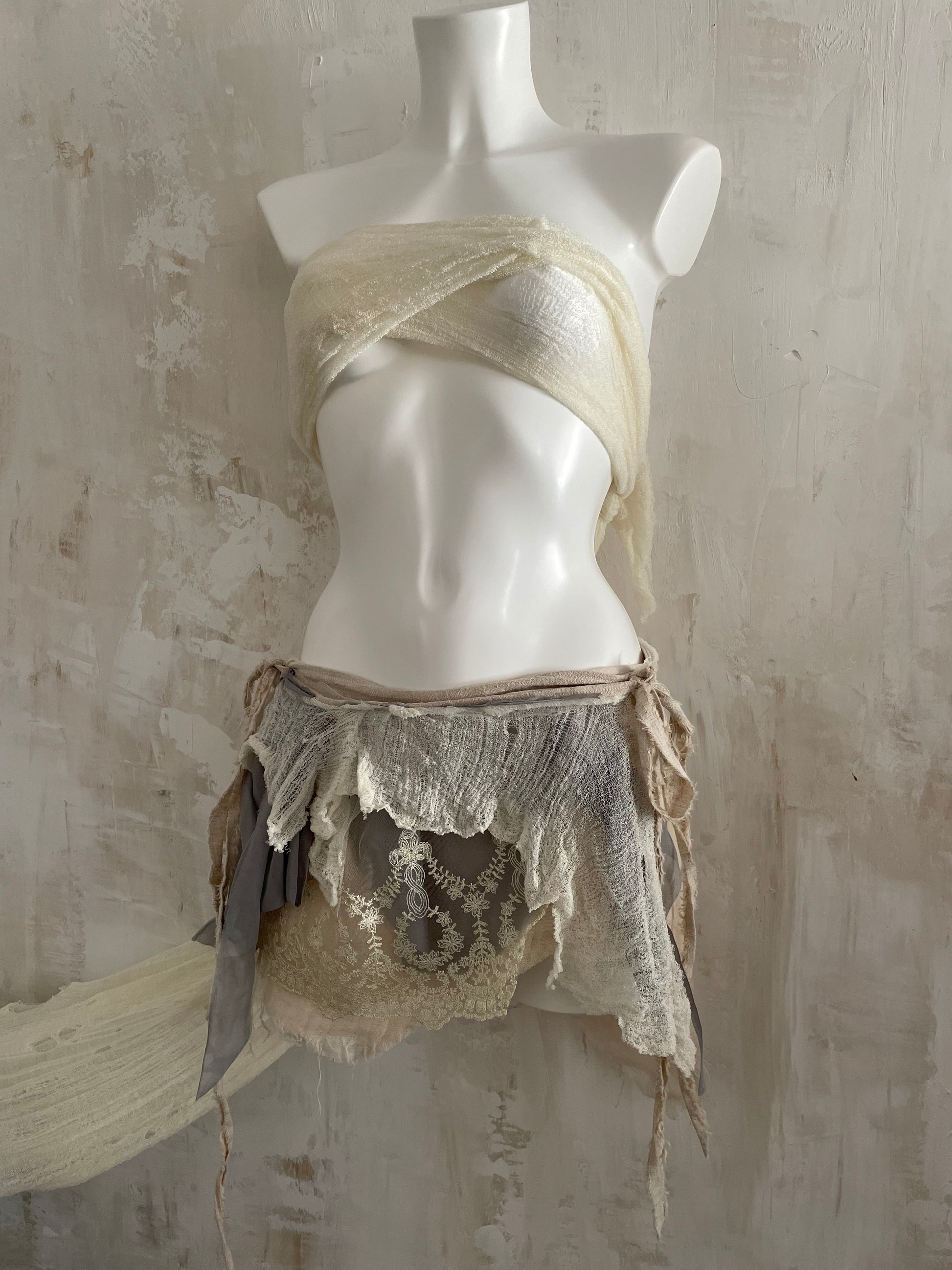 intricately layered wrap skirt with stonewashed linen base and layers of genuine silk voilé and merino wool