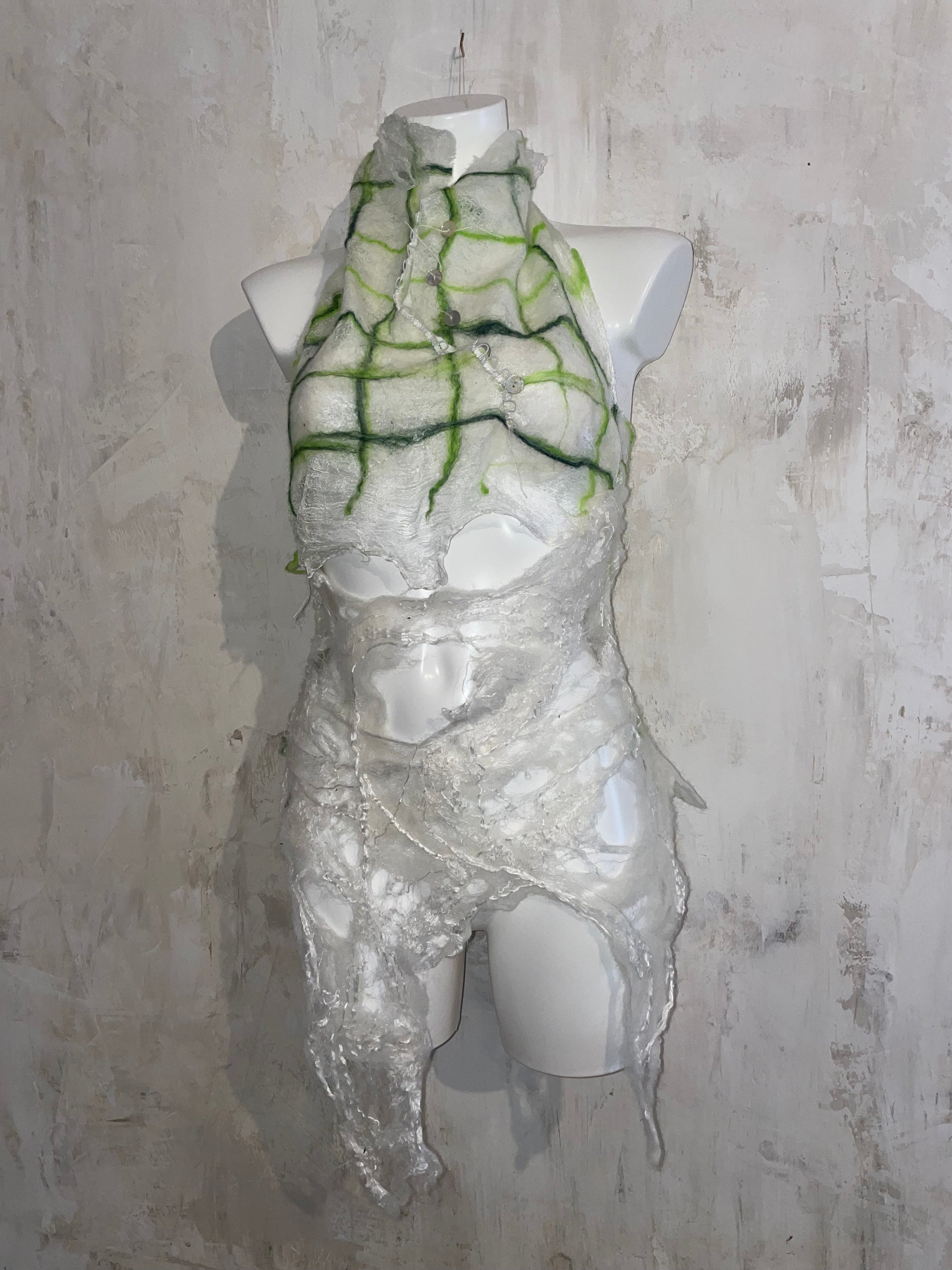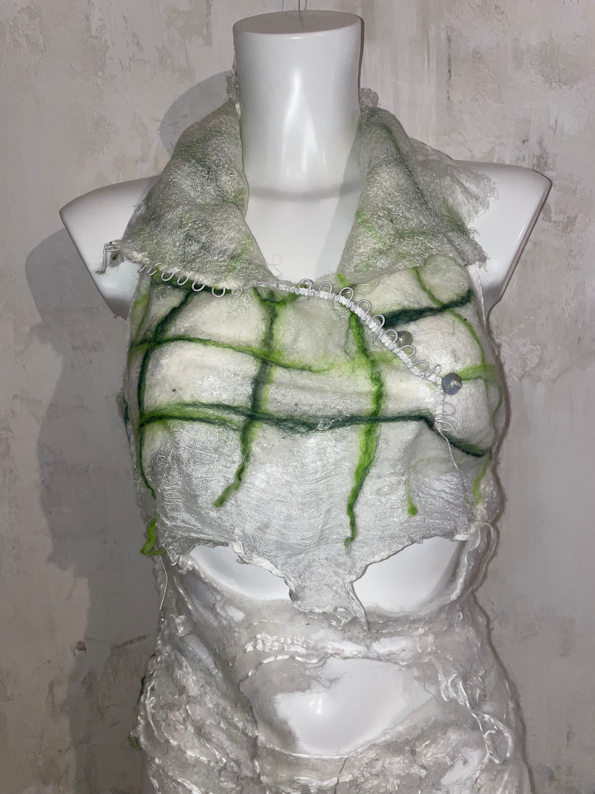 one of one top made of hand felted and created fabric with merino wool and mulberry silk